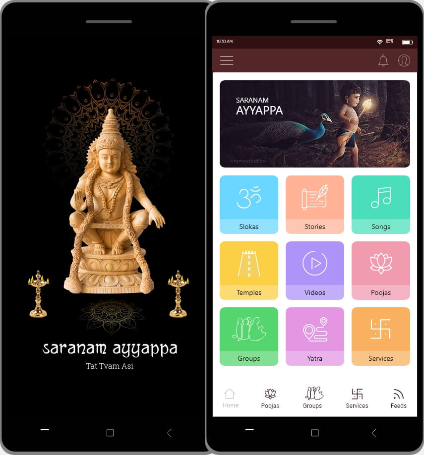 Saranam Ayyappa is a devotional mobile app created to assist Ayyappa devotees in managing their spiritual practices and pilgrimages with ease. After the redesign, the app evolved from a basic concept into a thoughtfully designed platform that offers a serene visual experience, intuitive navigation, and improved accessibility — helping devotees stay connected, organised, and spiritually engaged throughout their journey.